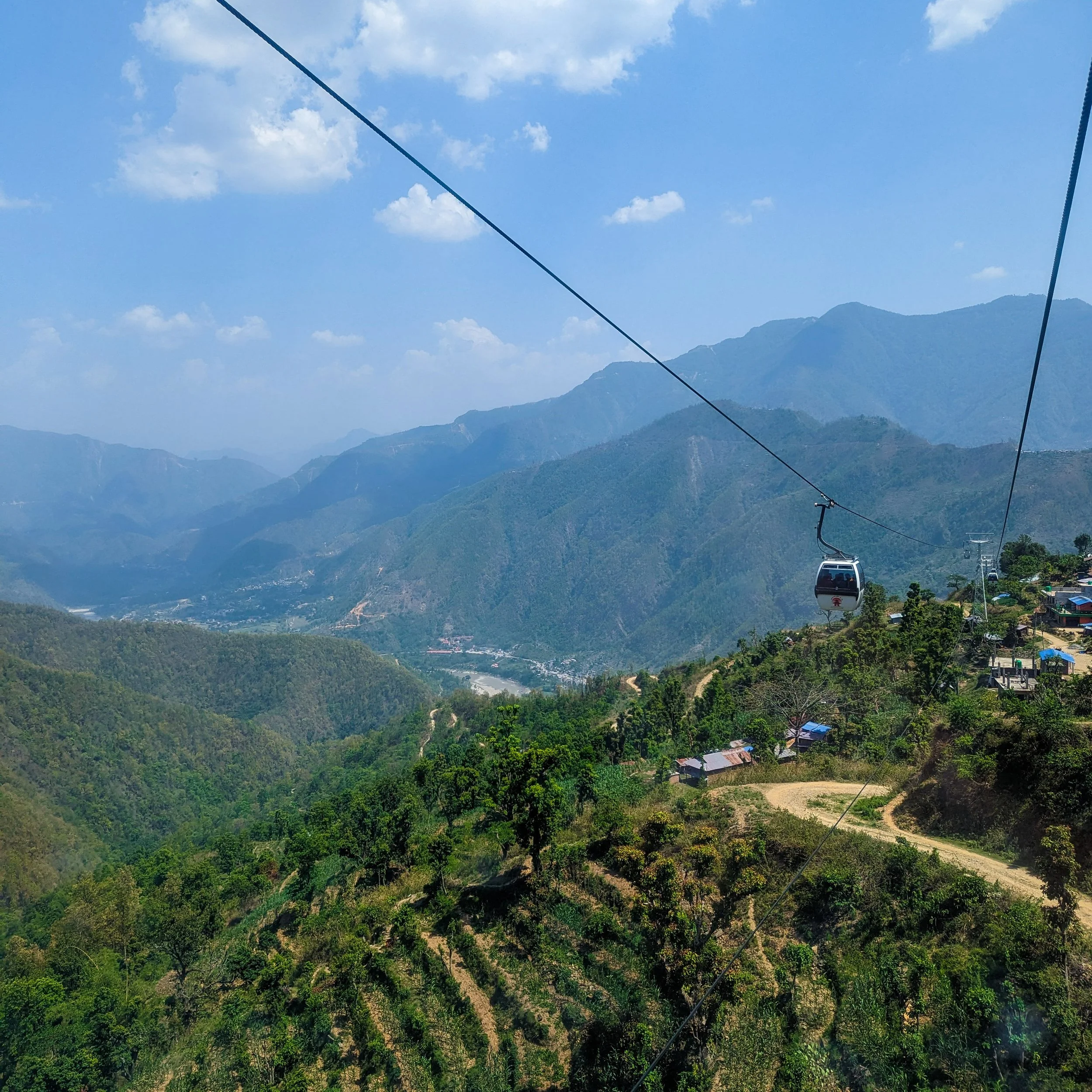After leaving Kathmandu, we embarked on the eight-hour car journey to Pokhara. Along the way, we stopped off at the Manakamana Cable Car, which carried us up to the hilltop village and temple of Manakamana. The ride offered breathtaking views, and reaching the temple, seemingly floating among the clouds, felt surreal. It was a fantastic addition to our trip and a welcome break during our long, bumpy drive to Pokhara.