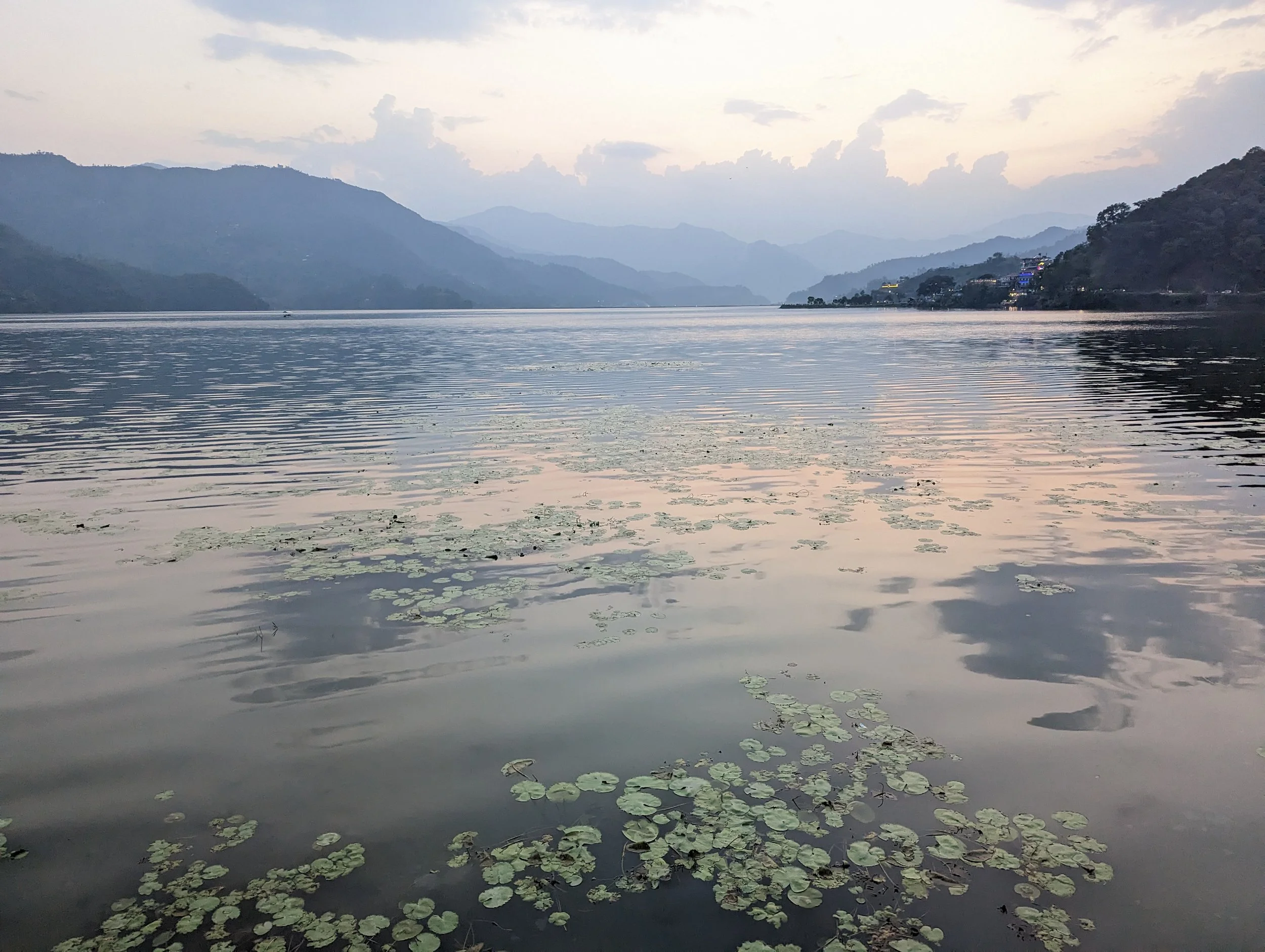 Despite the long drive, it was wonderful to get a glimpse of some remote villages high up in the hills, and get a sense as to how people were living their lives in this beautiful country. Upon arriving in Pokhara, we were immediately captivated by the serene lake, framed by distant mountains and dotted with floating plants. We spent hours exploring its surroundings, visiting various landmarks, restaurants, and shops. One highlight was our peaceful boat ride across the lake which ended in a frantic paddle to shore to escape the approaching rain. Another must-visit spot is Pokhara Disney Land. Momentarily forgetting my fear of heights, I jumped on the rickety Ferris Wheel and spent the following few minutes clinging to the seat in panic, much to Susan’s delight.